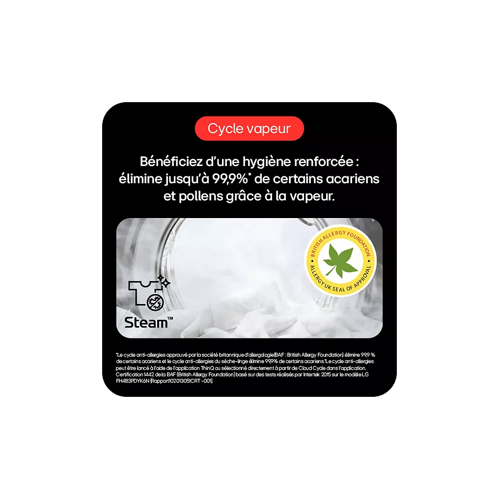 • Steam : permet d’éliminer 99,9% des allergènes, idéal pour les peaux sensibles.